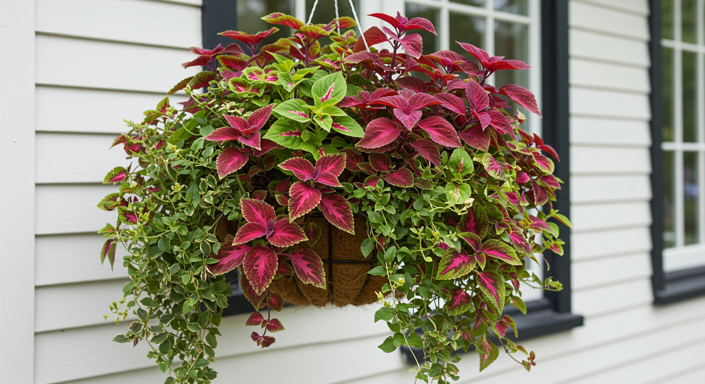 If you’re looking for foliage with color, coleus, like the one in this arrangement by West Coast Gardens, steals the show in summer container arrangements. From vivid fuchsia and electric lime greens to inky purples and deep bronze shades, there’s a coleus hybrid out there for whatever you seek. Coleus are frost-tender; plant them as annuals or bring them into greenhouses or onto windowsills over winter.