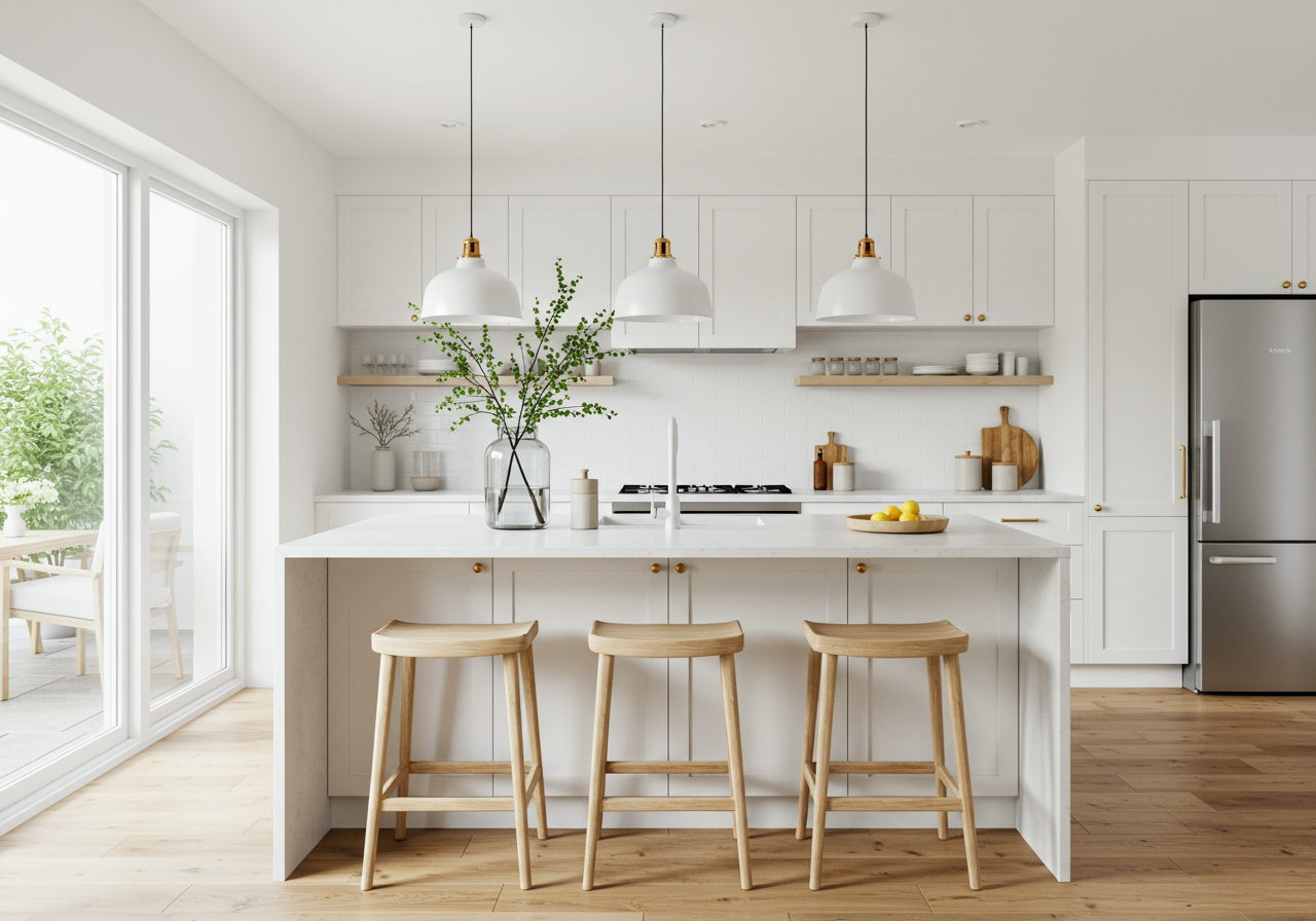 Welcome the outside in with natural materials and decor. Try wood and stone for surfaces and let in light with large openings. Add natural fiber accessories and plants to mimic the garden.