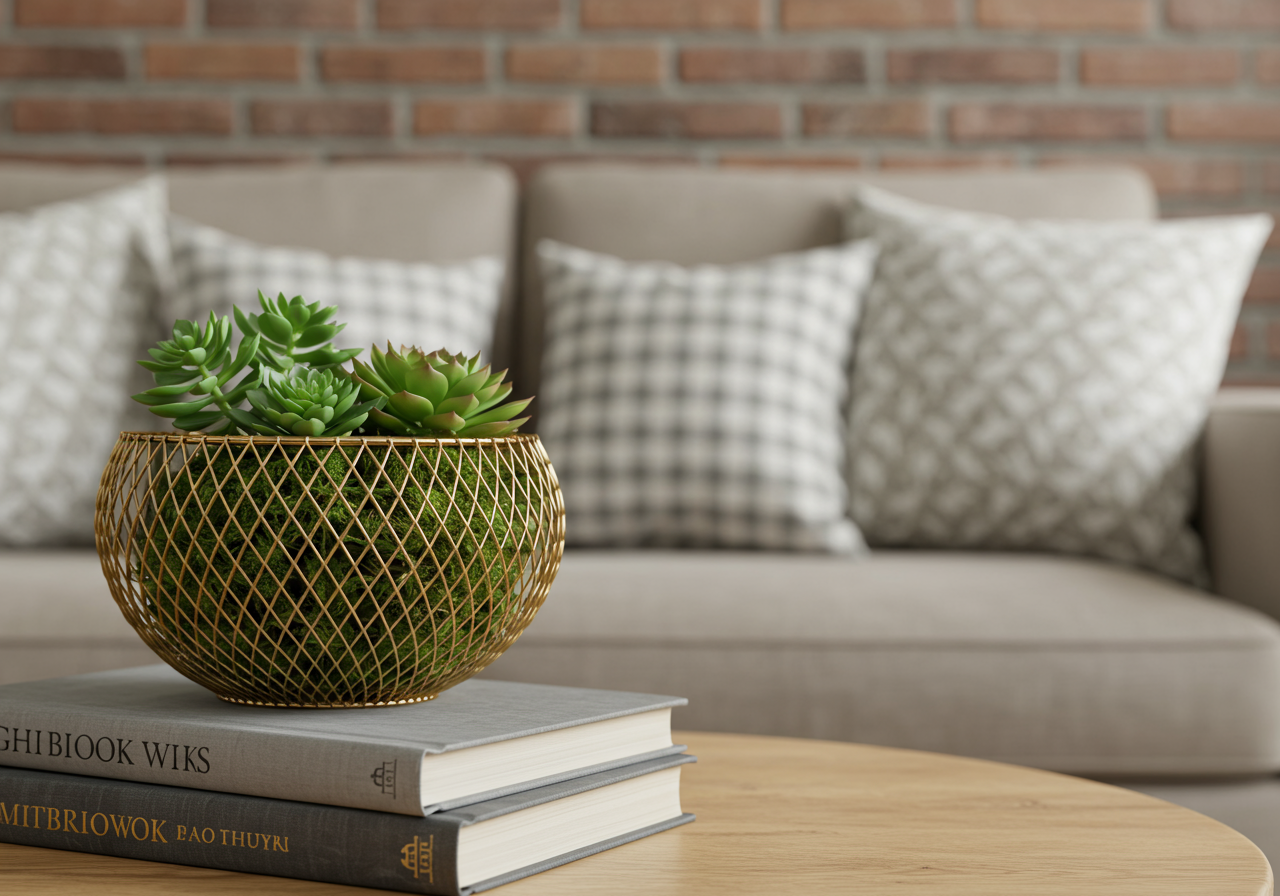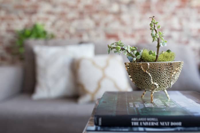Quite often homeowners declutter their homes to get them ready to sell, meaning all the personal family pictures, kids drawings, and artwork is put away. “In place of personal items I would suggest adding a small and simple green aloe plant or a delicate air plant in a clear glass globe in those newly empty spaces,” adds Ancel.