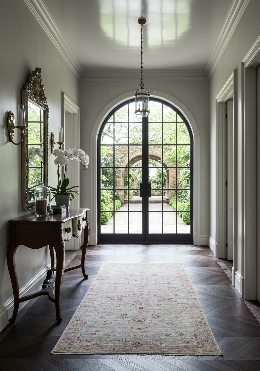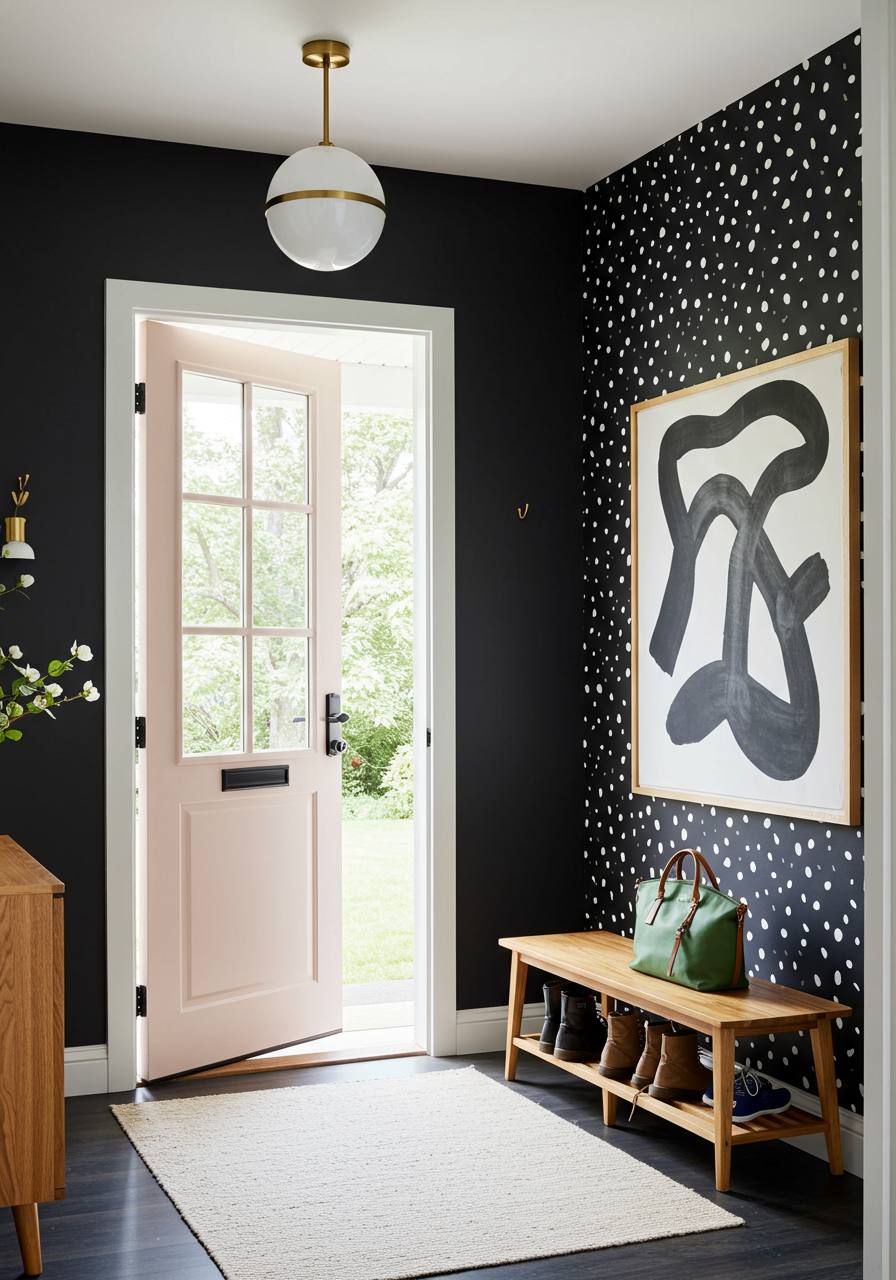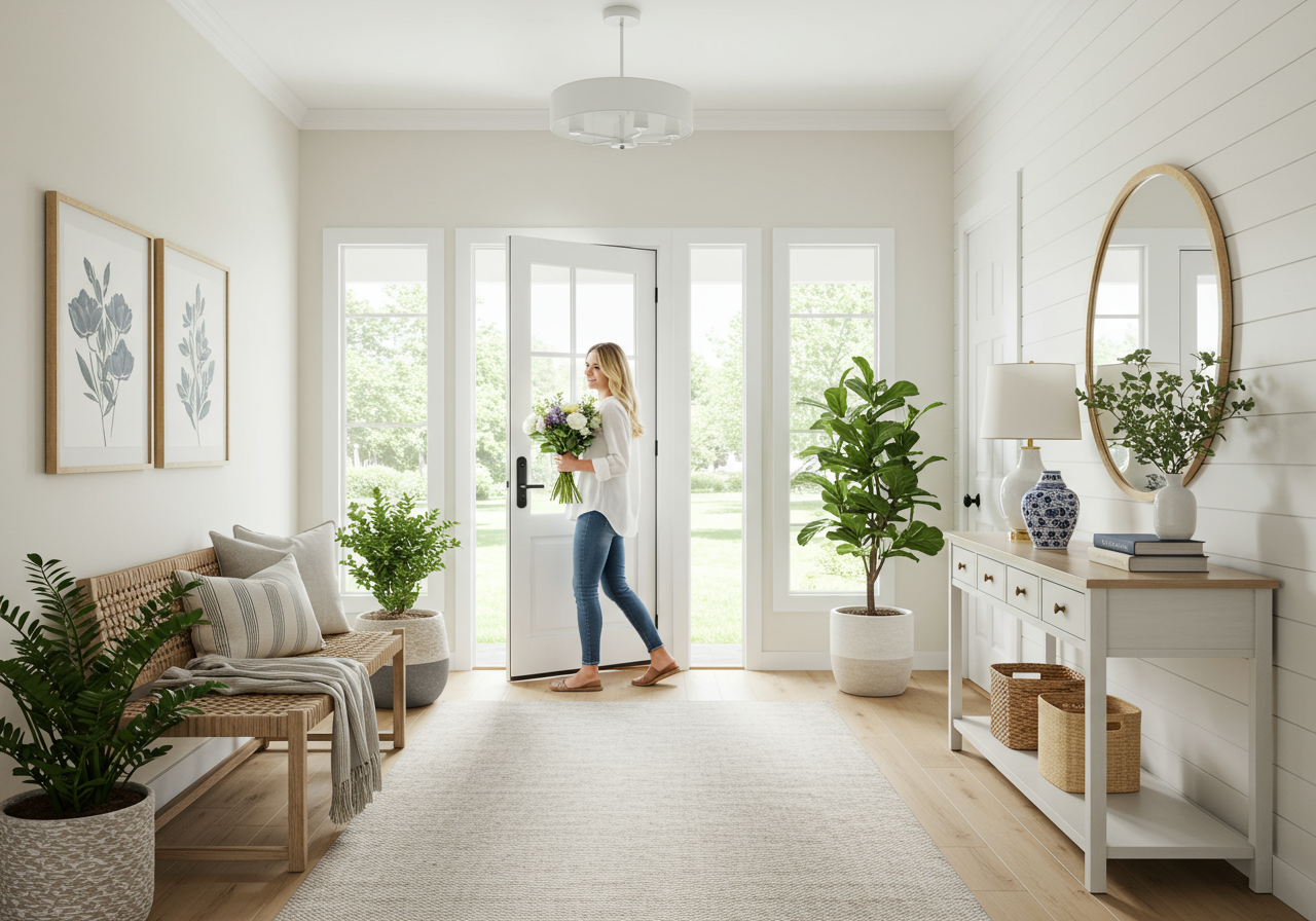 If your entry has room, your essentials may include a rug, a boot tray or bin to corral shoes, a surface for mail and keys, hooks for coats and bags, a place to sit while putting on and taking off shoes, and adequate lighting.