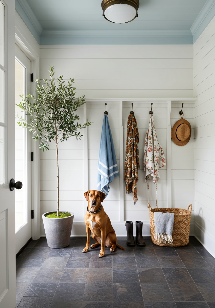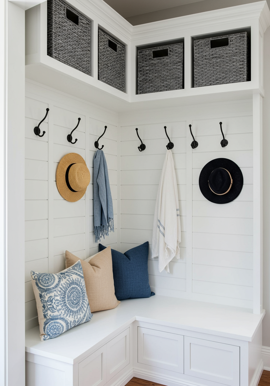 Decluttering tasks: If you have a large household, consider adding extra closed storage — piles of coats out in the open look messy, even when the coats are neatly hung on hooks. If you have children, make sure the storage is easily accessible and clearly marked.
