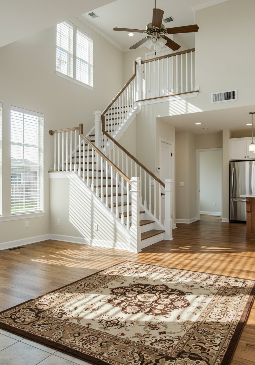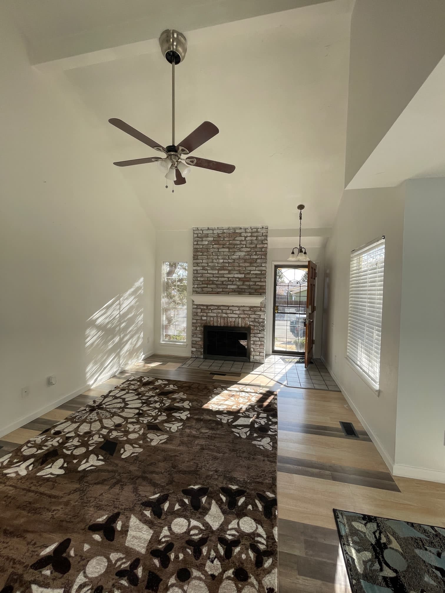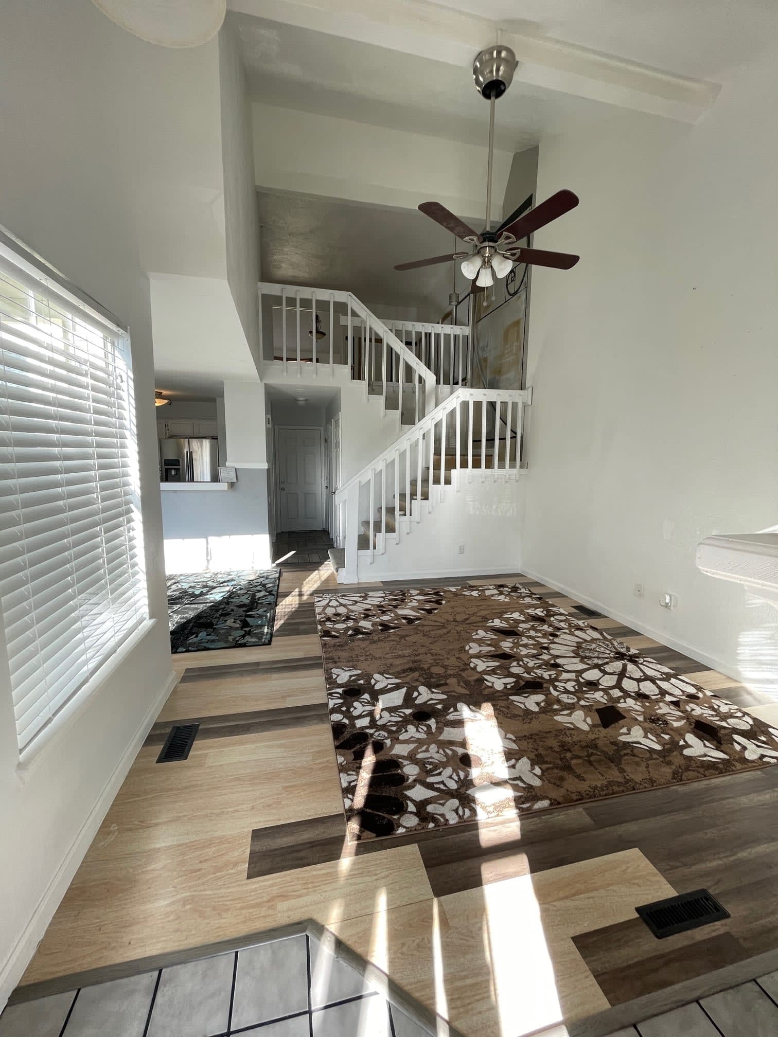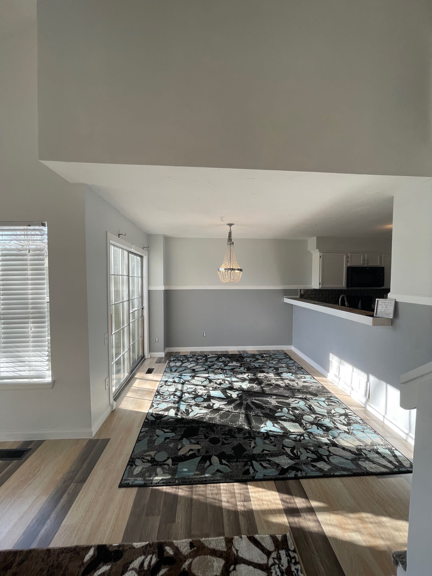 Going to see this listing at first felt like a blind date because there were no photos but we knew that the townhome complex was perfect and so we took a leap of faith that the house would be wonderful too. Let me tell you, it exceeded all of our expectations. Entering into a two story living room with a beautiful brick fireplace where they envision cozy nights and having the opportunity to invite some friends over in a homey environment.