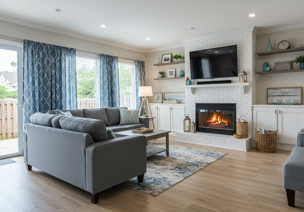 This home has four bedrooms and four bathrooms. The main floor has a living room that calls for you to settle in, relax, read a book, or start your next streaming binge next to the fireplace.