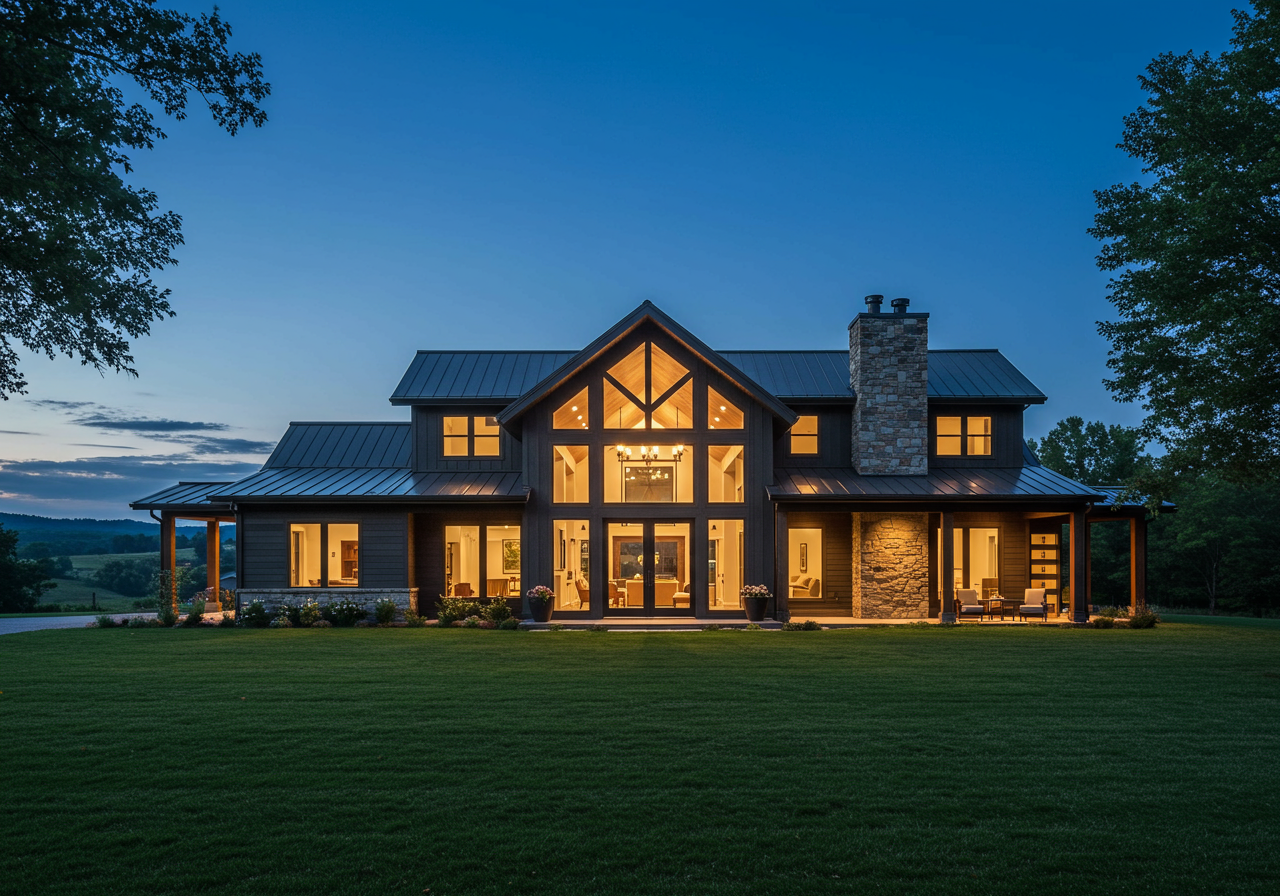 ON APPROACH. What looks like weathered, barn-wood siding—it’s actually a prefinished product: Southern Exposure by Montana Timber—signals a warm welcome, while relating to the local building forms. And, according to Teague, the low-maintenance product is superior to the real thing. “When you stain actual wood, it becomes uniform and you lose that random texture,” explains the architect, who topped the walls with a standing-seam metal roof. “But prefinished allows each board to be unique, so it doesn’t look monochromatic.”