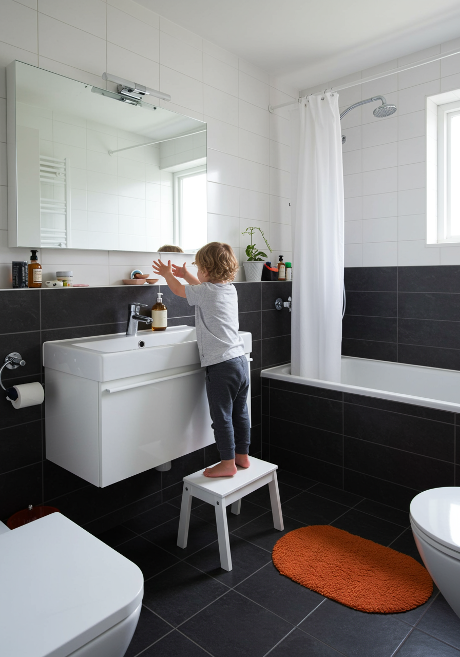 Be sure a sturdy stool is positioned by every sink in the house to make the soap and water accessible.