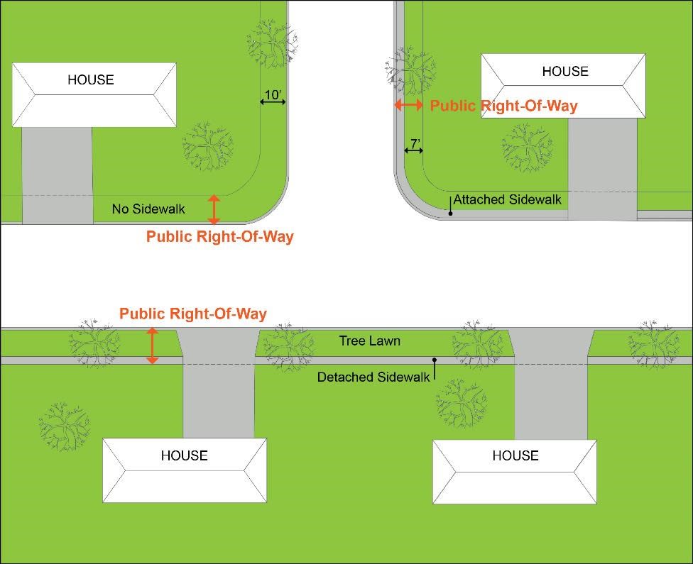 - 7 feet behind attached sidewalks