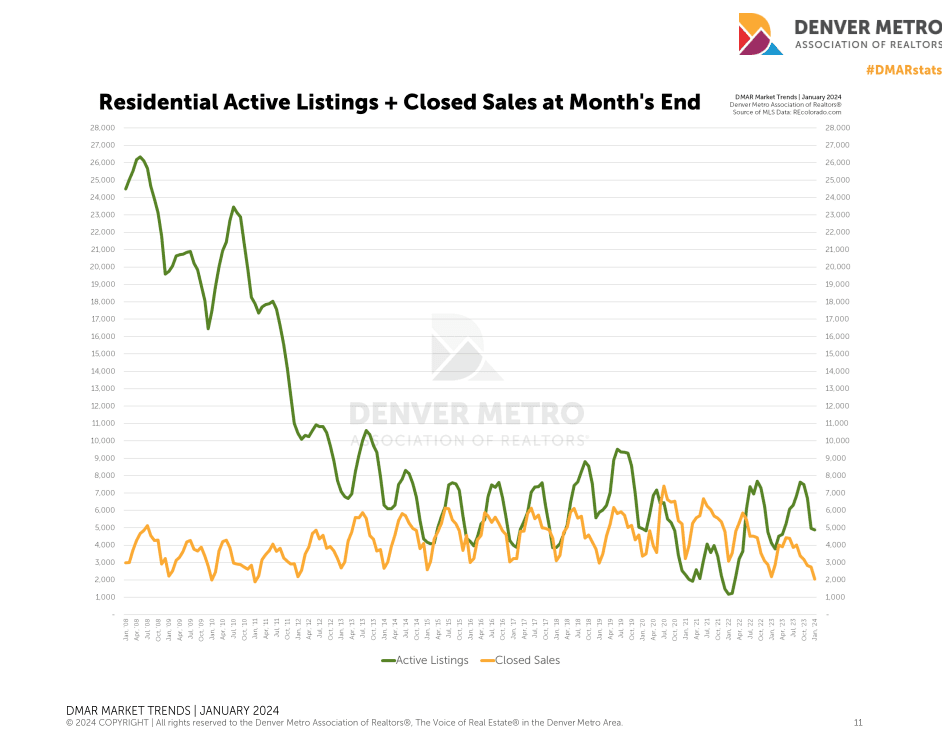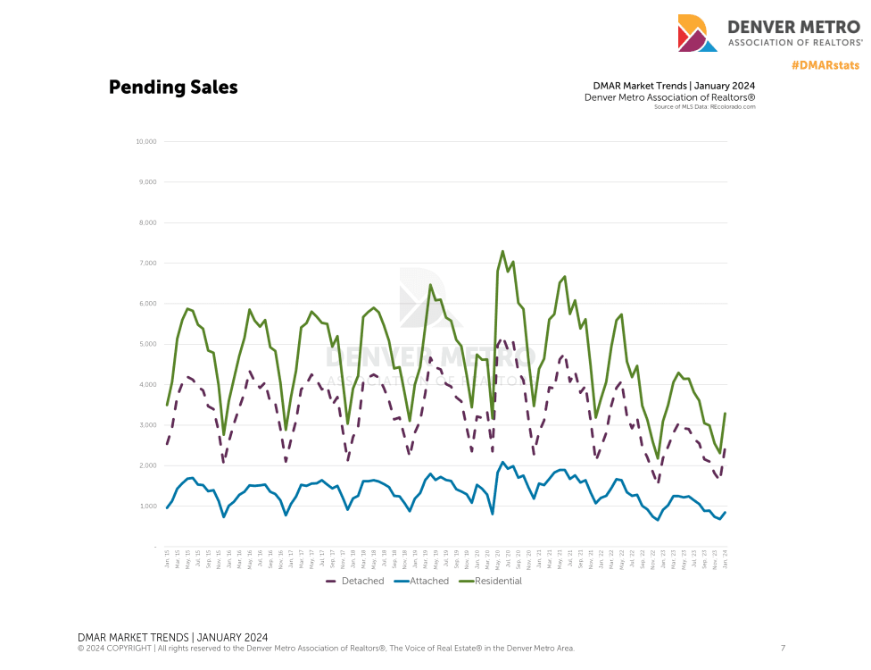 Entering the new year, Buyers are seemingly optimistic, re-enter the real estate market with increased choices. New listings surged by 14.73 percent to 3,280 year-over-year, notably with detached properties showing a 17.94 percent increase to 2,301. Pending home sales experienced a 6.5 percent boost to 3,294, accompanied by a 5.88 percent rise in median days in MLS to 36 days. Lagging by 6.26 percent, closed sales are not surprising, considering they reflect homes sold in January that went under contract in December. Comparing numbers from January of this year to the previous one is preferable, given December's traditionally low inventory.