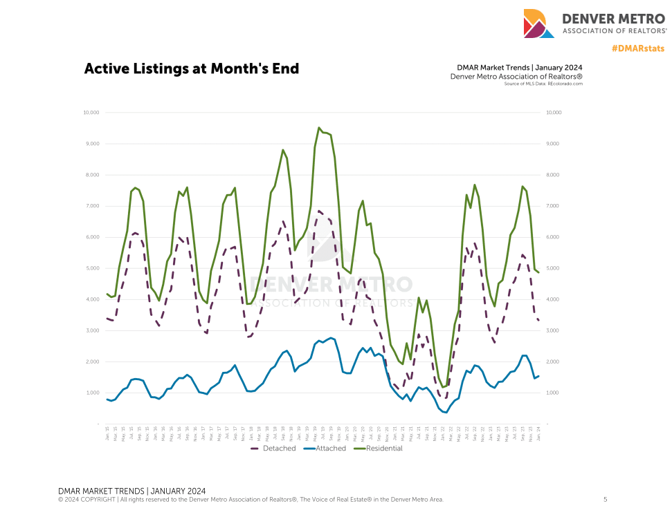 However, attached pending sales showed a 6.61 percent year-over-year decline to 848 from 908. Closed sales also decreased by 13.70 percent, with the median close price staying at $395,000—$25,000 less than December's median sales price. Additionally, the median days in MLS increased to 34 days from 28 in January last year.