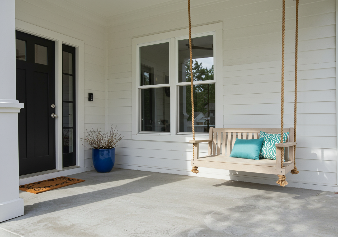 Something that makes this home stand out is all of the outdoor spaces! There is a welcoming front porch, upstairs porch to walk out on from the primary suite, as well as a nice size lot that features a water feature and fire pit.