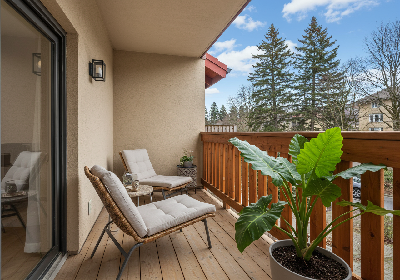 From the living room there is a second outdoor space, a large balcony to enjoy. Picture yourself sipping your morning coffee or grow a small potted garden.