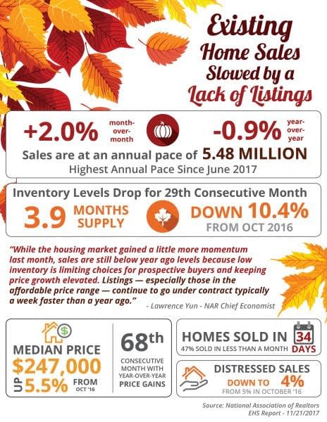 - NAR’s Chief Economist, Lawrence Yun, had this to say: “While the housing market gained a little more momentum last month, sales are still below year-ago levels because low inventory is limiting choices for prospective buyers and keeping price growth elevated.”