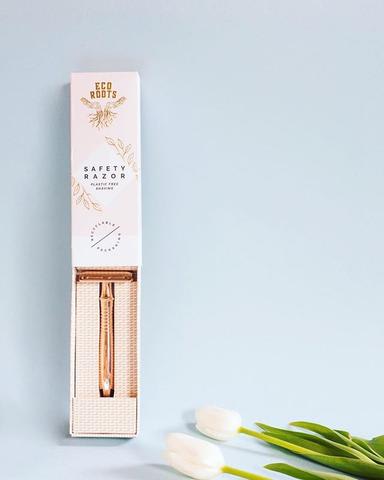 Unlike disposable razors, safety razors are made to last a lifetime. We love this beautiful rose gold one, but there is a color for every preference and shaving need! The initial cost of the razor is $38 and a pack of 100 blades is $14.50. If you change your blade every 3 weeks you will be spending about $3 on blades every year. And in 50 years? $150. The single blade means a closer shave and less razor burn. The safety razors are super user friendly and an easy transition from disposable razors, plus you will save money and the environment at the same time.