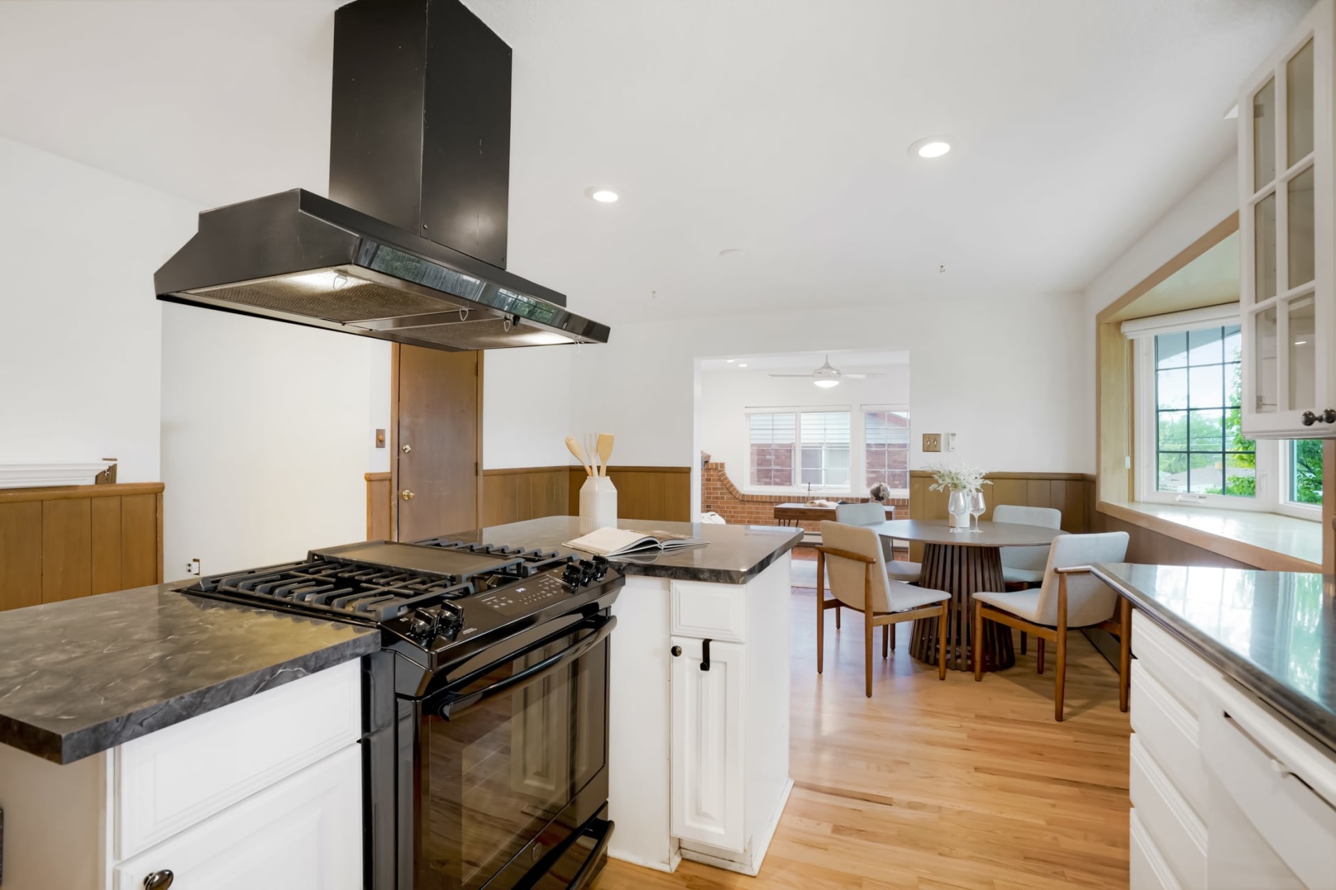 This beautifully updated home has an ideal layout with 3 bedrooms, 2 bathrooms (including a spa like primary suite) on the main floor. Hardwood floors throughout, coved ceilings, updated windows, 2 brick fireplaces, and a well preserved vintage bathroom create charm in this meticulously maintained home.