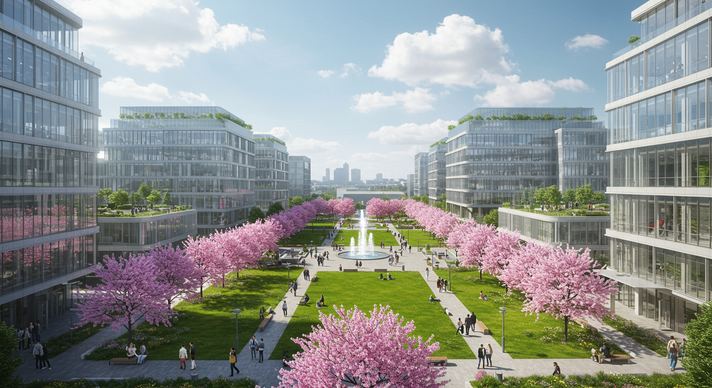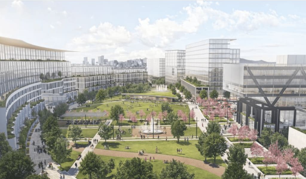 A rendering of the Fox Park development in Globeville shows the proposed Great Lawn, with 14 acres of parks and interconnected open space.