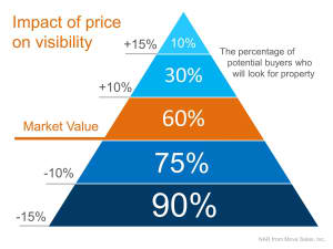 If your home is on the market and you are not receiving any offers, look at your price. Pricing your home just 10% above market value dramatically cuts the number of prospective buyers that will even see your house. See chart below.