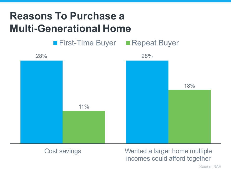 Cost Savings: Approximately 28% of first-time homebuyers and 11% of repeat buyers opt for multi-generational living as a means of cost-efficiency. By consolidating their financial resources, households can collectively shoulder the financial obligations, such as mortgage payments, utilities, property taxes, and maintenance, thus rendering homeownership a more financially attractive option. This proves especially advantageous for first-time buyers, who may grapple with the challenge of securing a home in today's competitive real estate market. Also, we see many young families choose this situation as it's true it takes a village to raise those little ones!