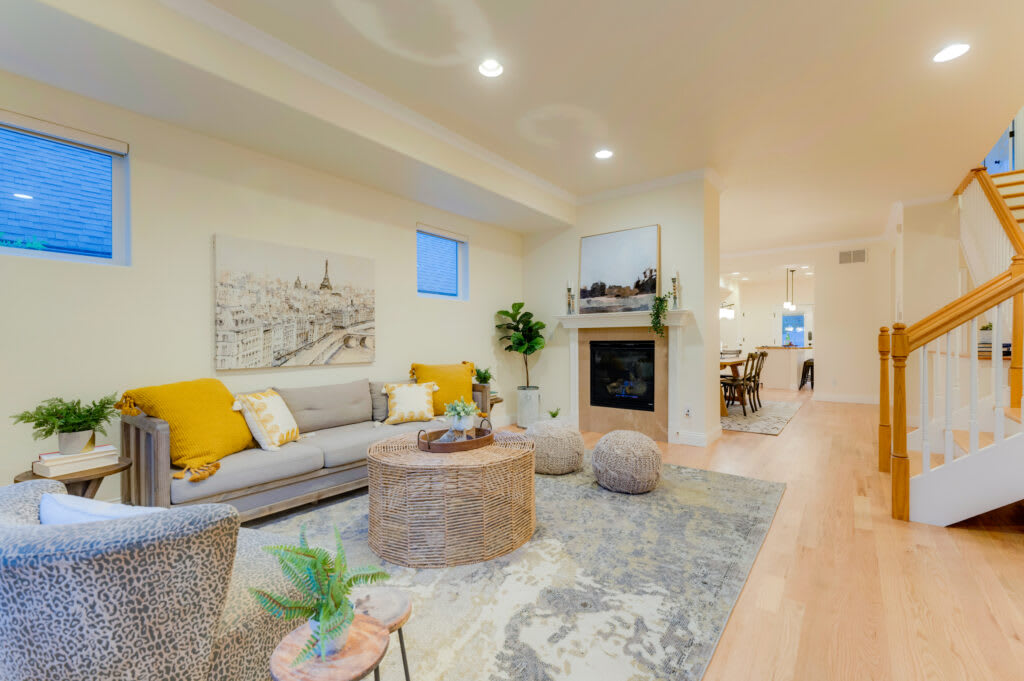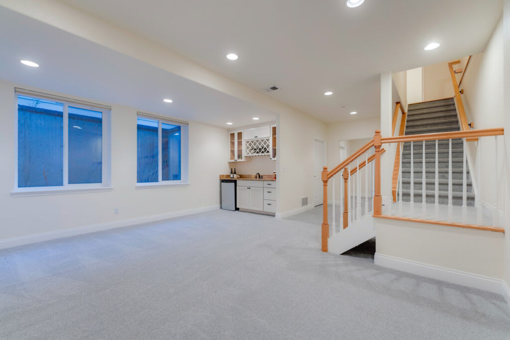 The additional bonus space can be transformed into a second living room, workout space, work/learn from home area, or theatre space with a wet bar, fridge, sink, and storage.