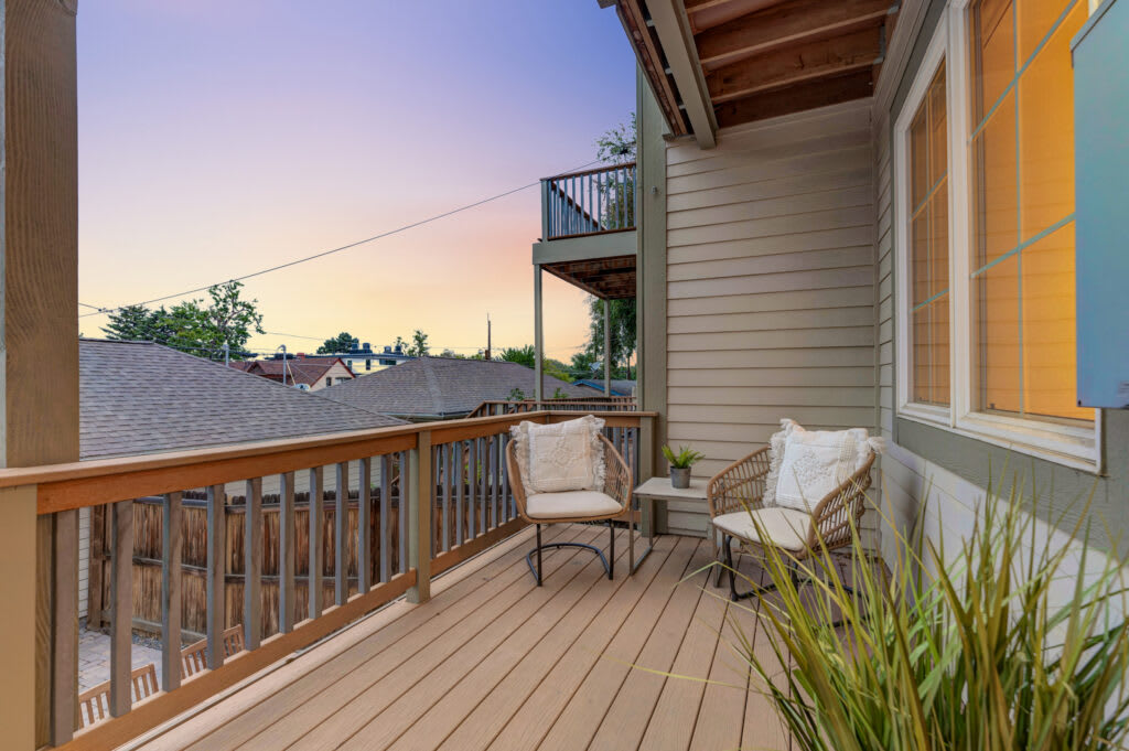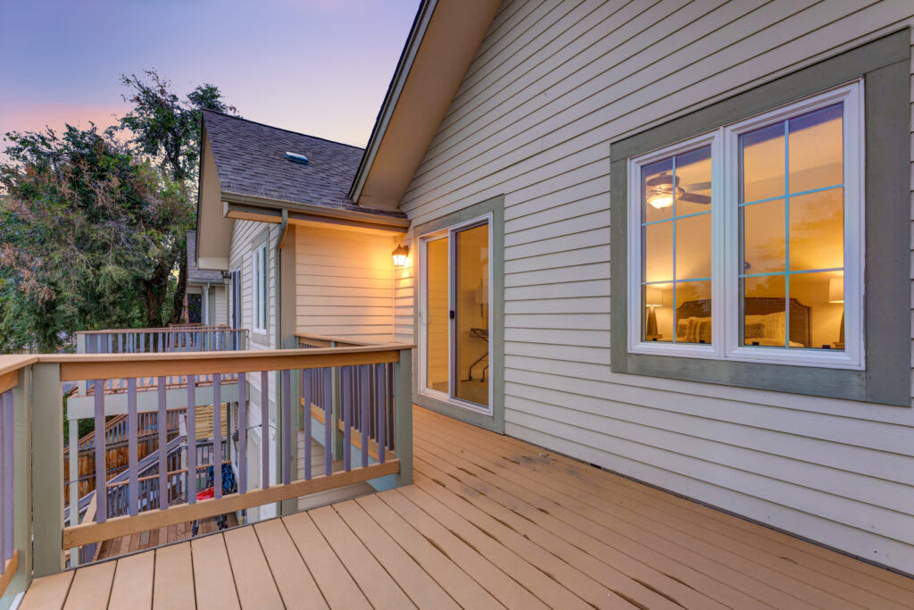 This unit has the largest decks in the quadplex and nice privacy being an end unit.