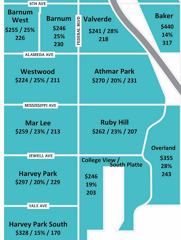 If you’re curious about how much home your budget can get you in the various Denver neighborhoods, lets sit down over a cup of coffee and talk about your options. For example, here is a map showing the area I’ve been writing about in this blog post, it shows average price, average 3 year appreciation, and average price per sq ft.