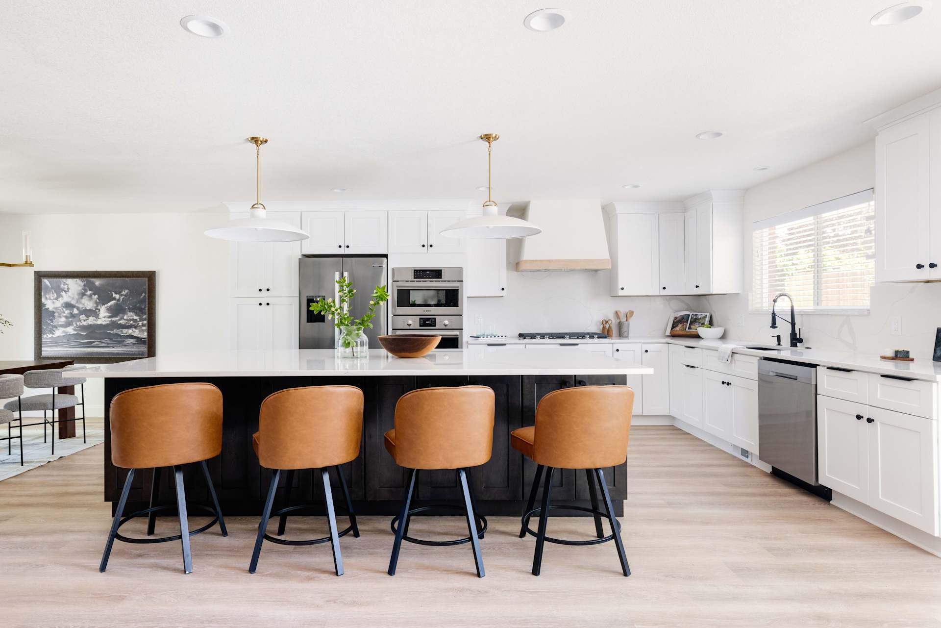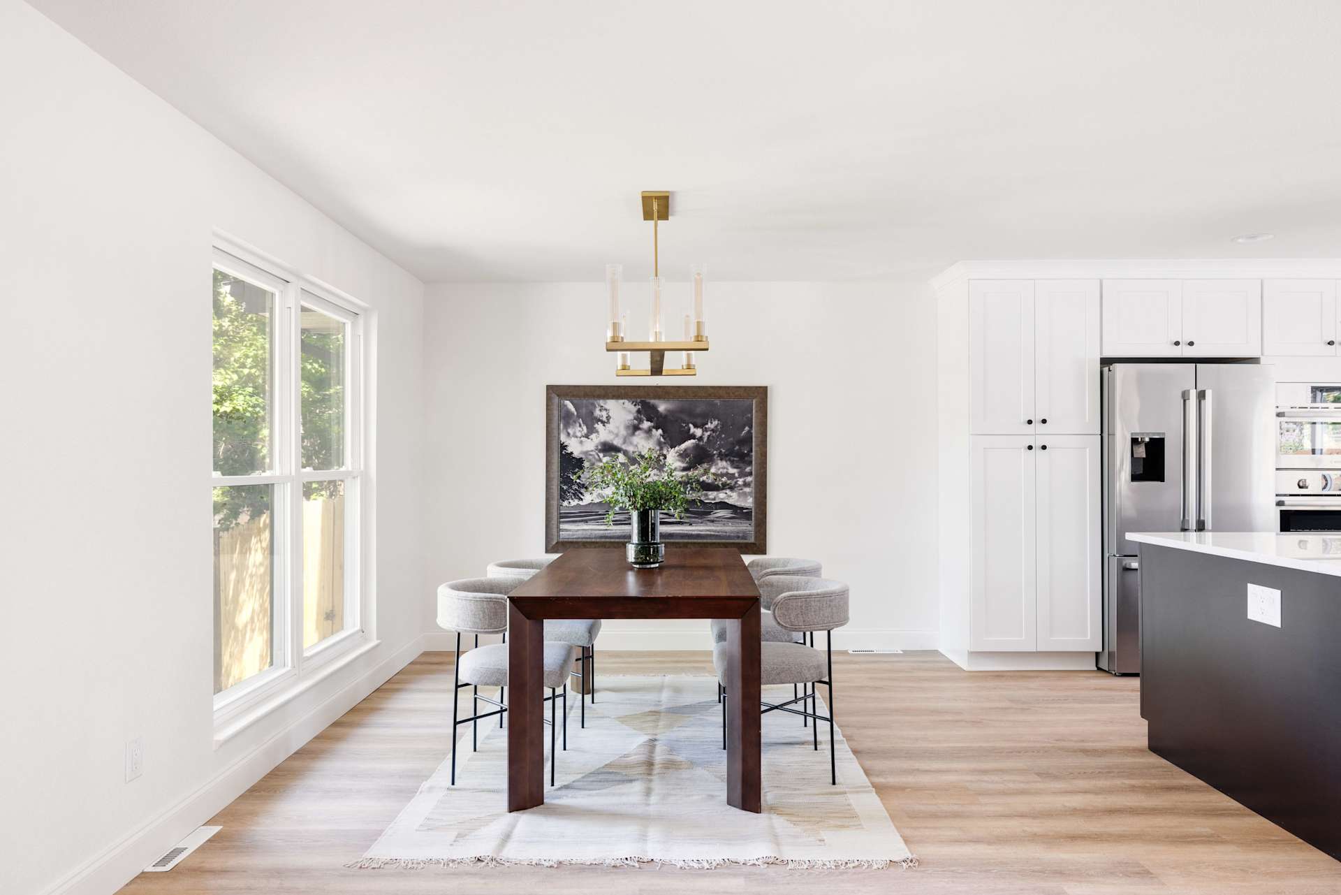 As you step inside, you're greeted by a kitchen truly designed for entertaining. An entire quartz slab kitchen island, gas cooktop with pan drawers, wide plank flooring, and statement lighting flow throughout the kitchen and dining rooms. The open-concept layout seamlessly connects to outdoor patio for summertime barbecues. The expansive patio allows room for dining and lounging while the rest of the yard is landscaped with grassy area to play, wildflowers, established lilacs and peonies and soaring trees that create a true oasis. Adorned with modern rectangular pavers with river rock, a brick patio, and low maintenance landscaping this yard is sure to be your new happy place.
