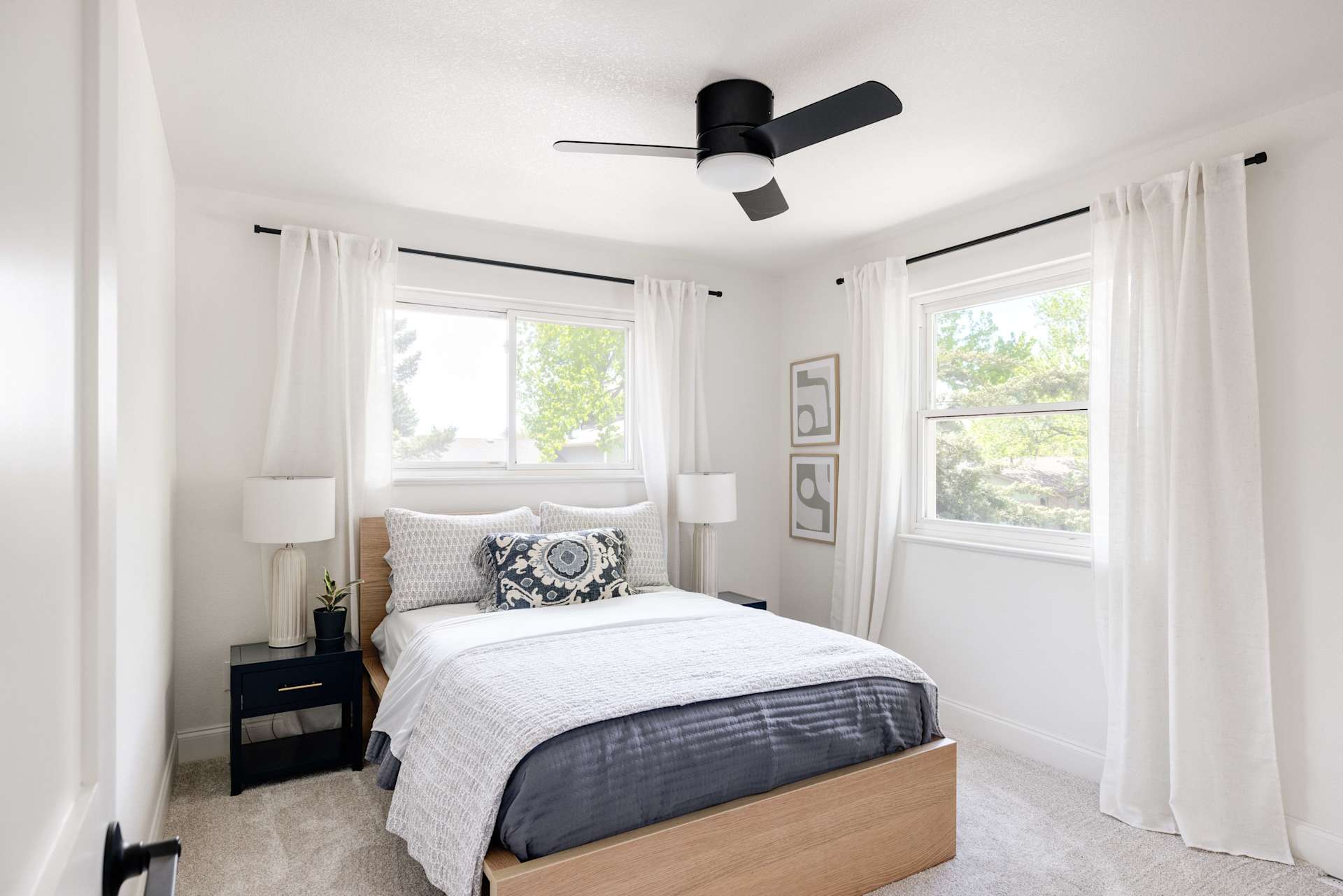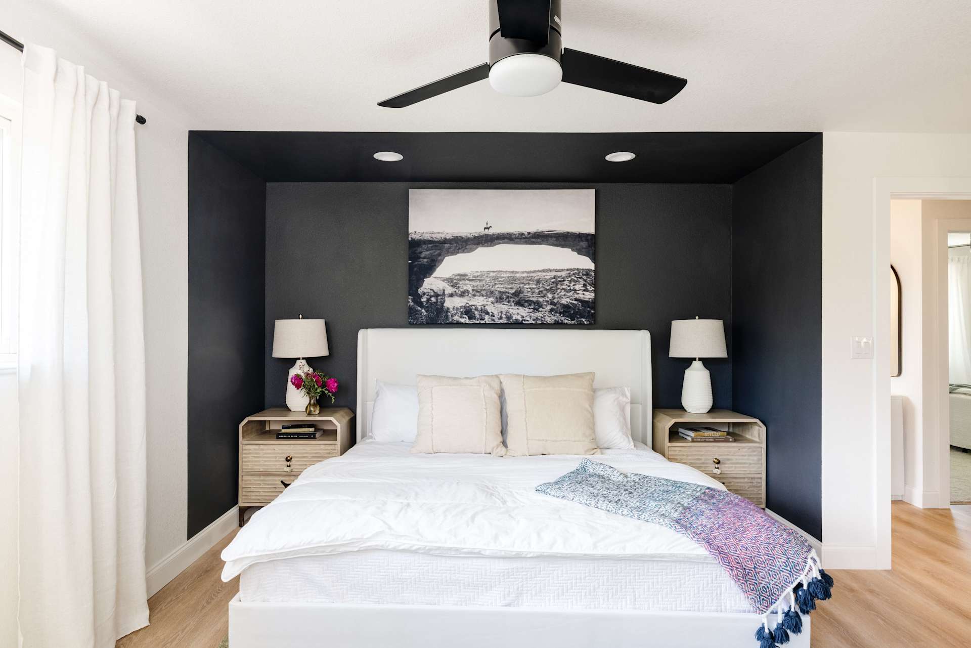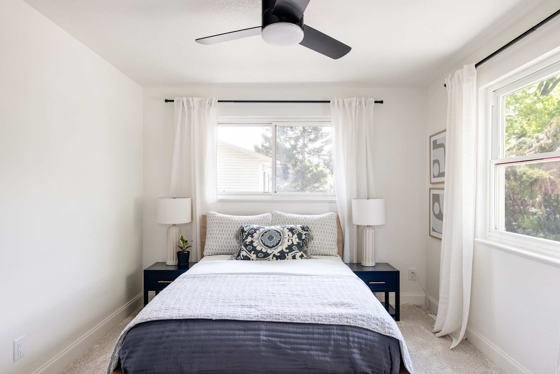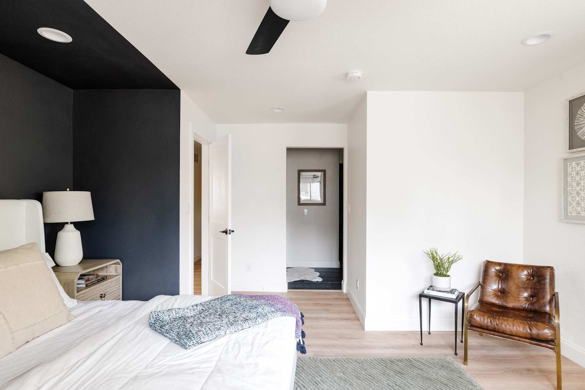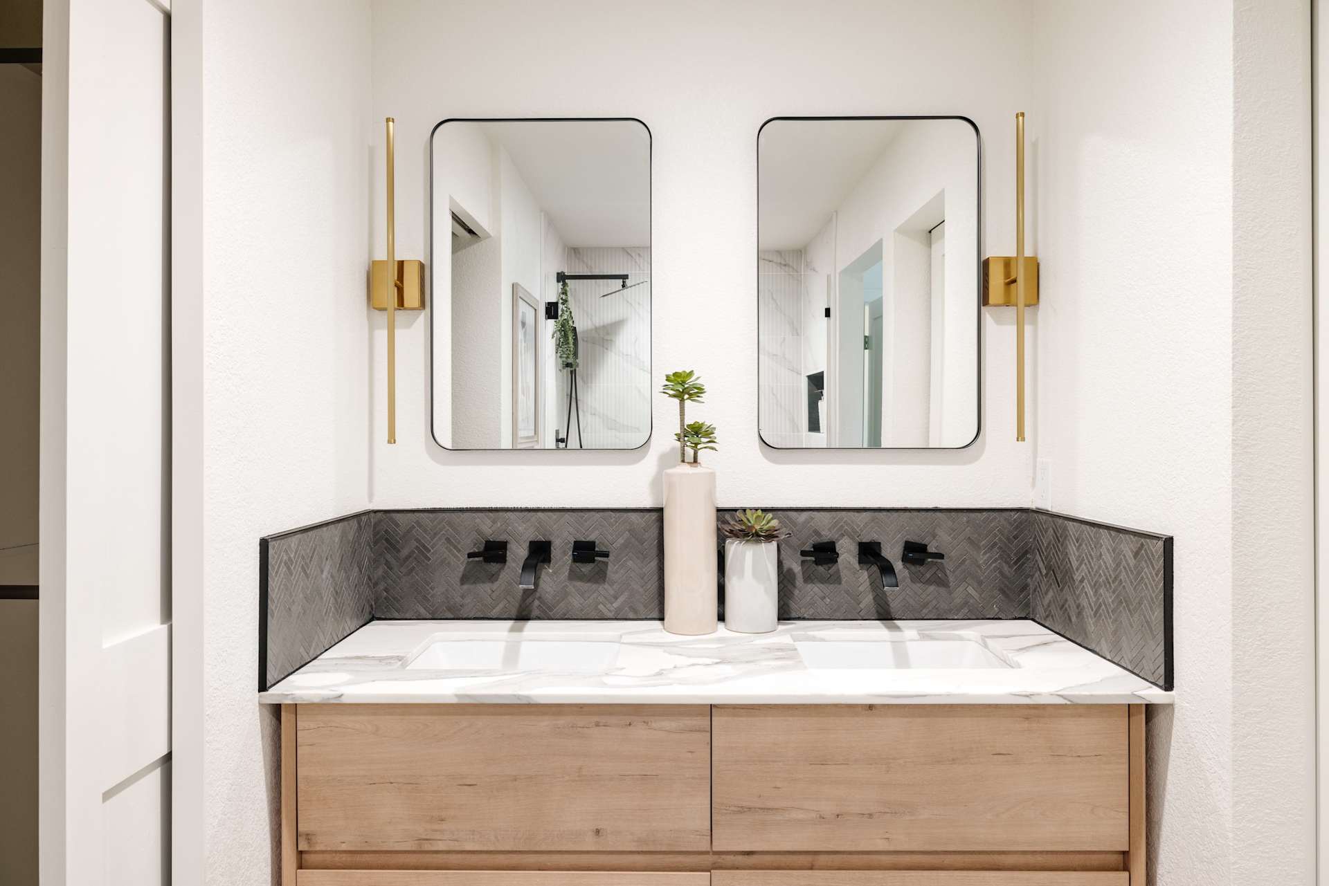 This spectacular primary suite is perfectly designed to fit your king size bed and flows into the spa like primary bathroom with heated radiant flooring, floating white oak vanity, and fluted marble tiles in the extra large shower. It’s the perfect place to recharge. Though they're hard to come by in this neighborhood, walk-in closets are a luxury this home also offers. Two additional bedrooms and a bathroom upstairs provides the ideal layout.