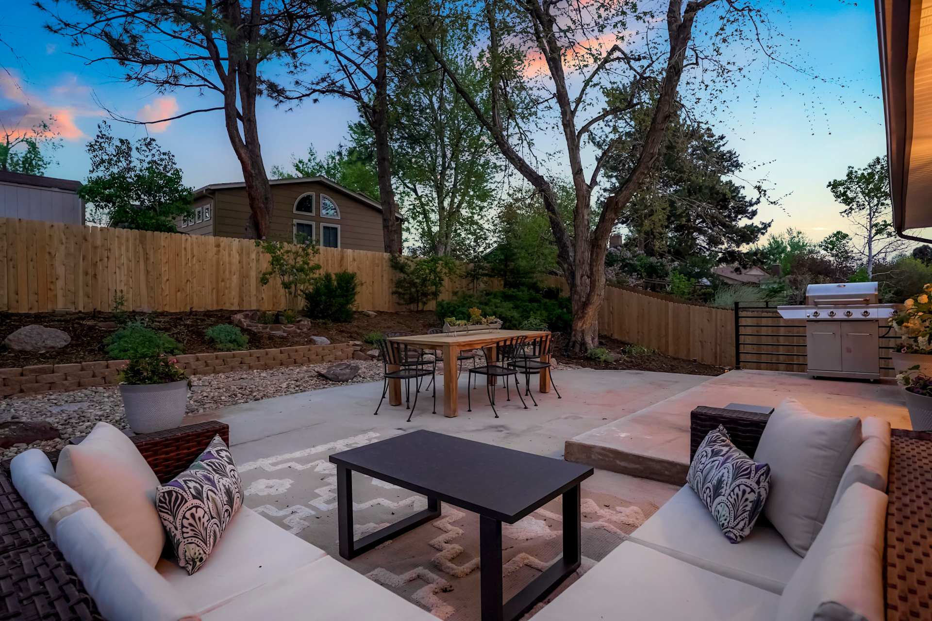And let's not forget about the outdoors. With modern pavers, lush greenery, and towering trees, it's a serene escape from the hustle and bustle of everyday life. Whether dining al fresco or simply unwinding in the sun, this yard will become your favorite spot to relax and recharge.