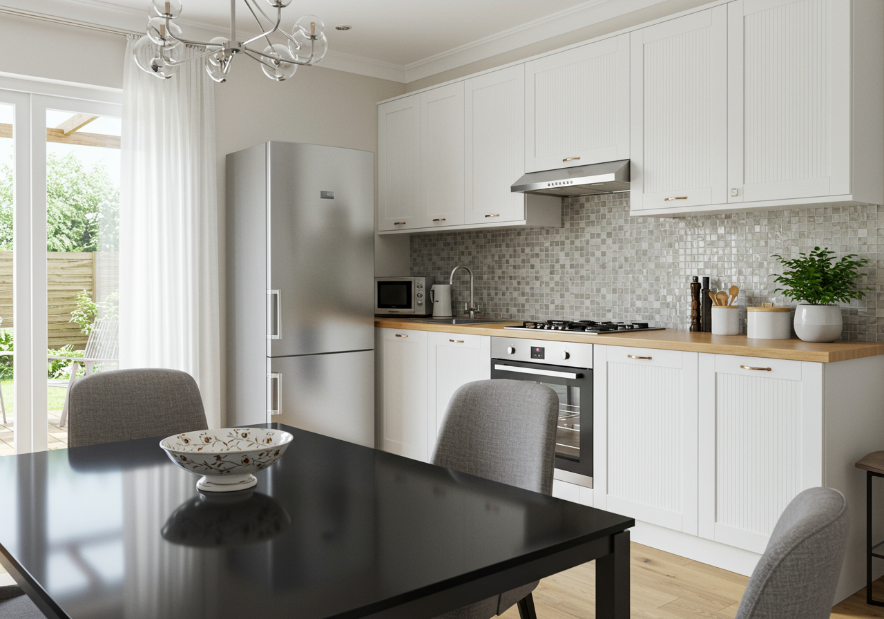 An entertainers delight, this eat-in kitchen leads out through the sliding doors to the back patio.