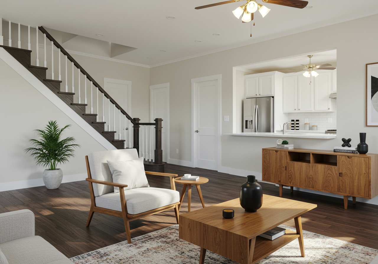 As you enter the main living area, a large picture window becomes a focal point, allowing an abundance of natural light to flood the space, creating a warm and welcoming atmosphere that instantly uplifts your spirits.