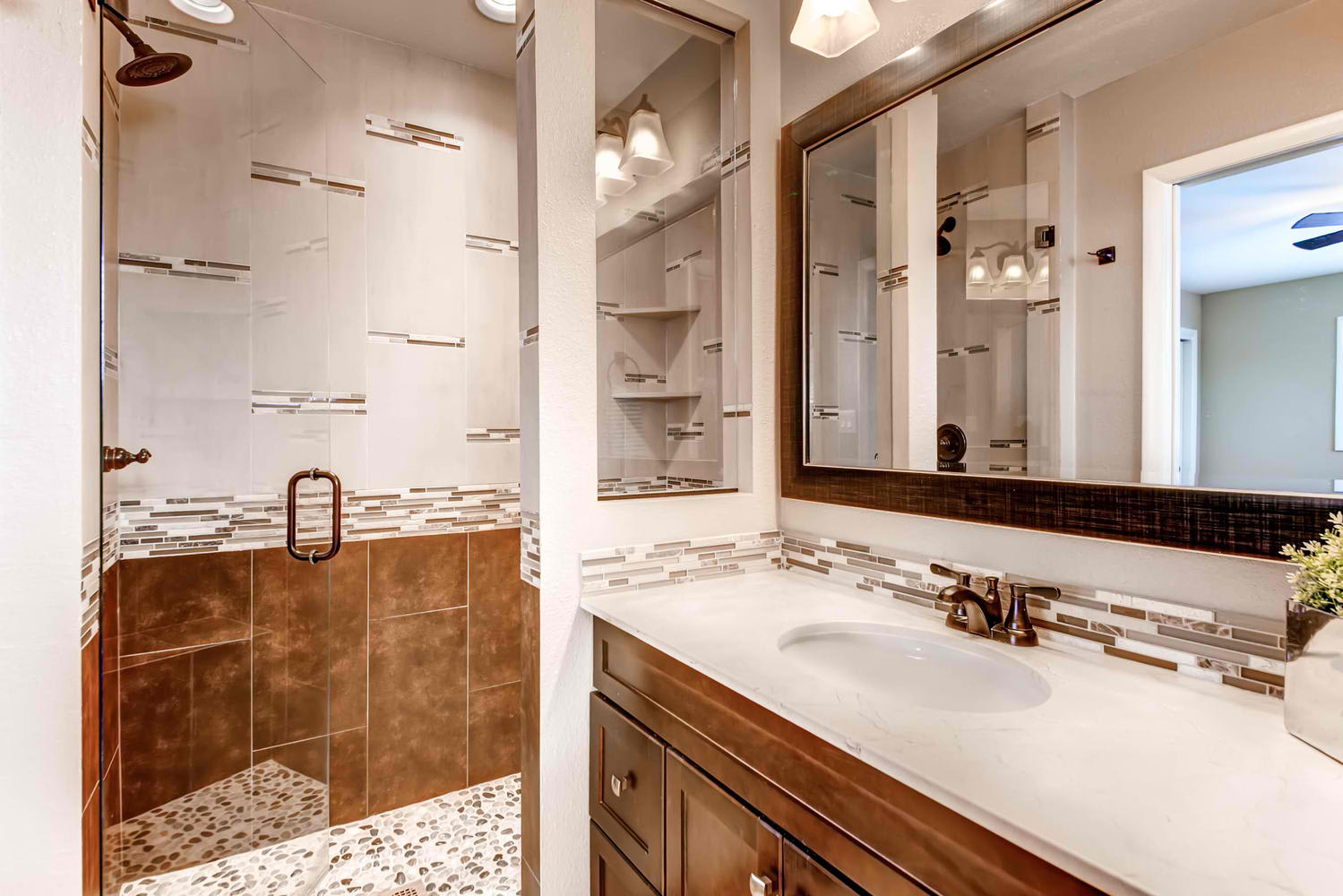 Welcome to this ideal Southglenn ranch home. Nestled into a beautifully landscaped lot, this home has all the bells and whistles you have been searching for! Upstairs has 3 bedrooms, 2 bathrooms, and a living area flooded with natural light. The main floor master suite is beautiful with an updated bathroom, heated bathroom floors, and privacy height windows.The kitchen is a cook’s delight with custom cabinets, slab granite, gas stove, fireplace, french doors, and an ideal layout for entertaining. The basement is full of pleasant surprises like a large living space, 2 bedrooms and a bathroom. These updates will keep this home’s maintenance low for years to come. All of the following have been replaced over the last 3 years: furnace, air conditioner, sump pit & pump, water heater, siding, garage door, windows, and appliances.