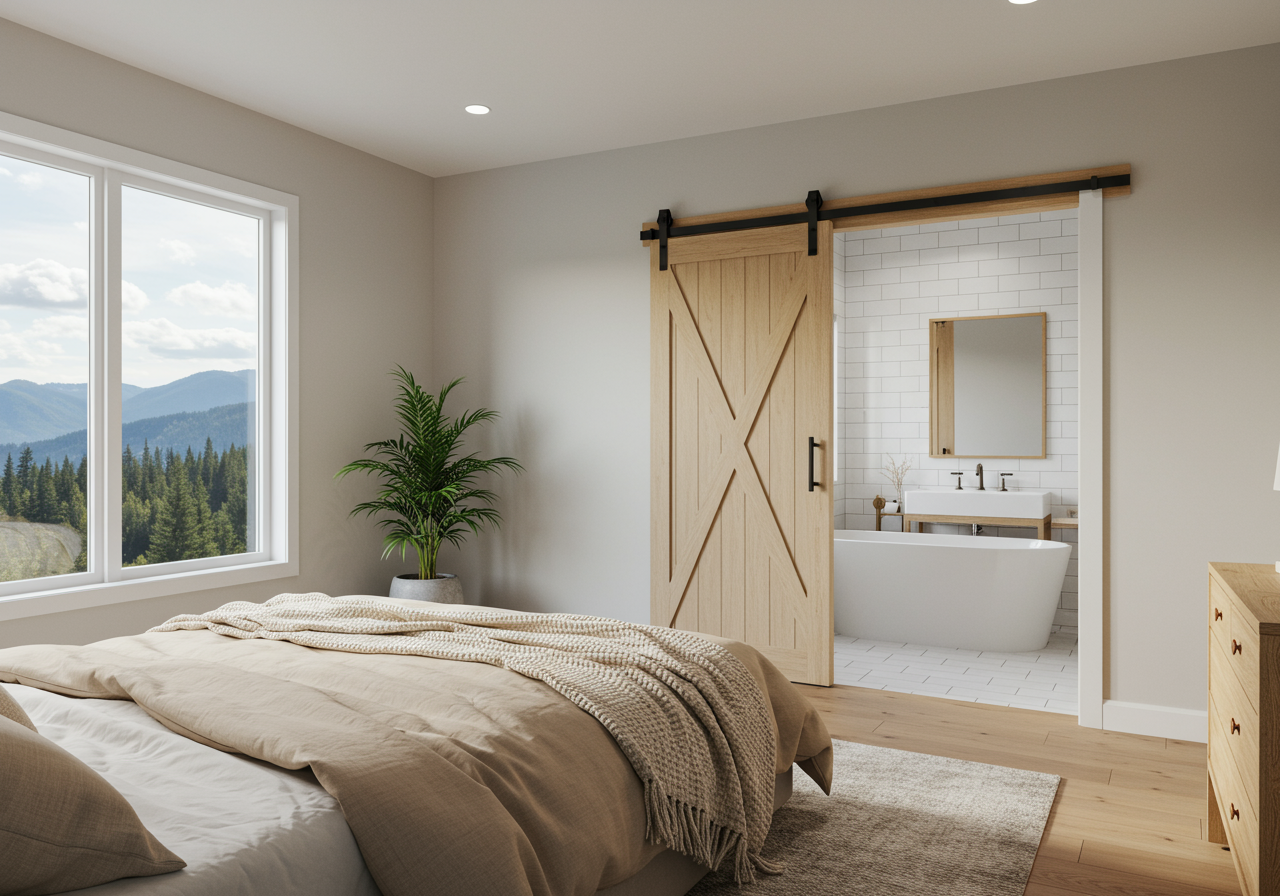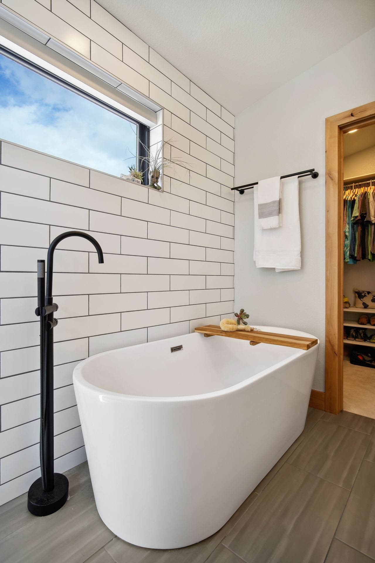 Three bedrooms and two bathrooms comprise the main level of the home including an ideally designed primary suite with 5 piece bathroom, spa-like soaking tub, heated floors, walk-in closet, double vanity, and panoramic views from the privacy of the walk-in shower.