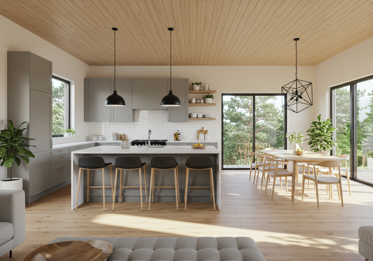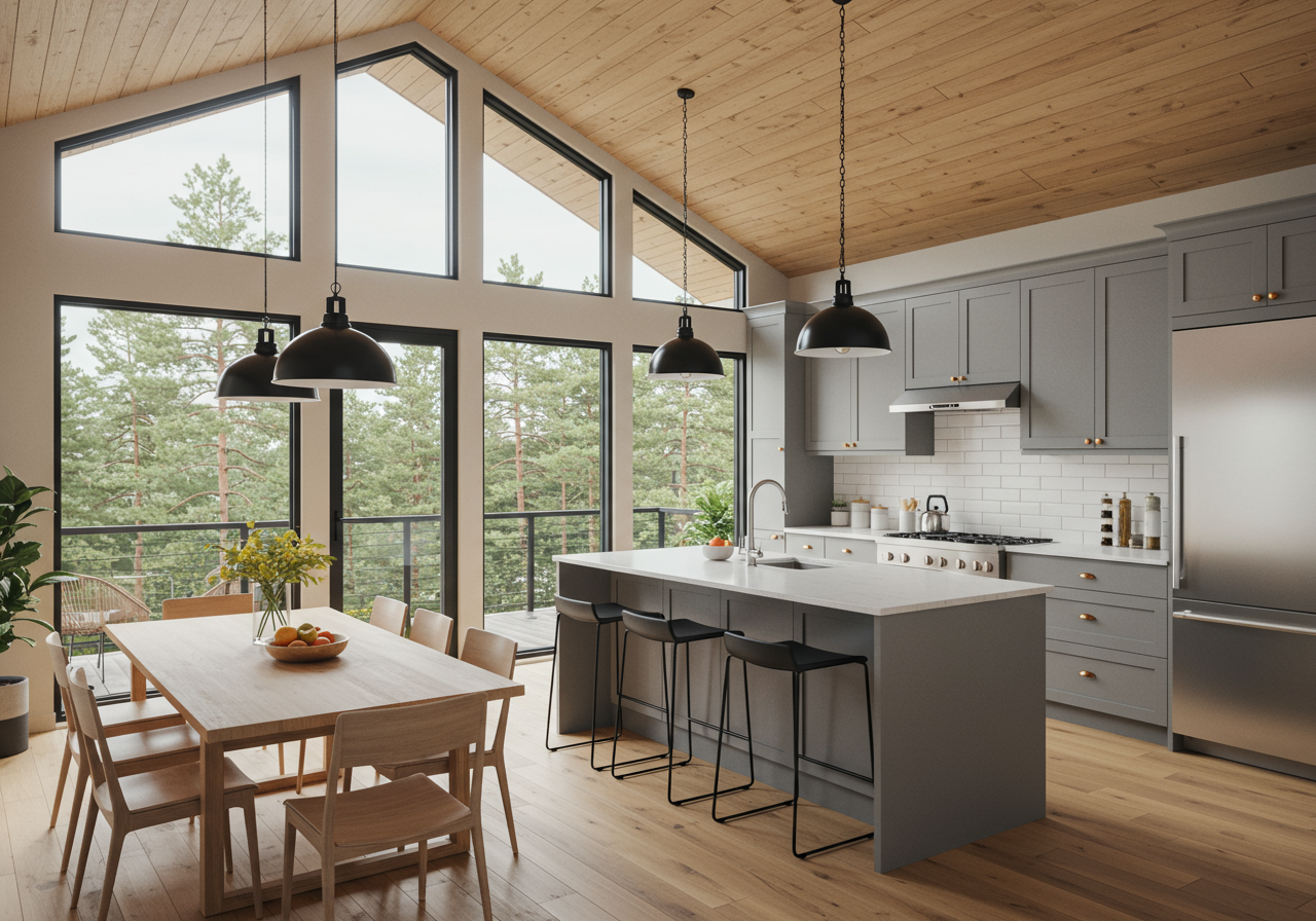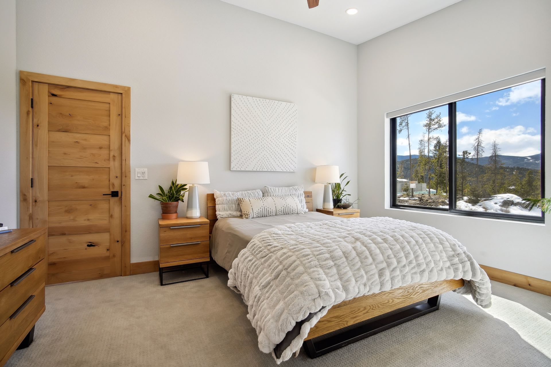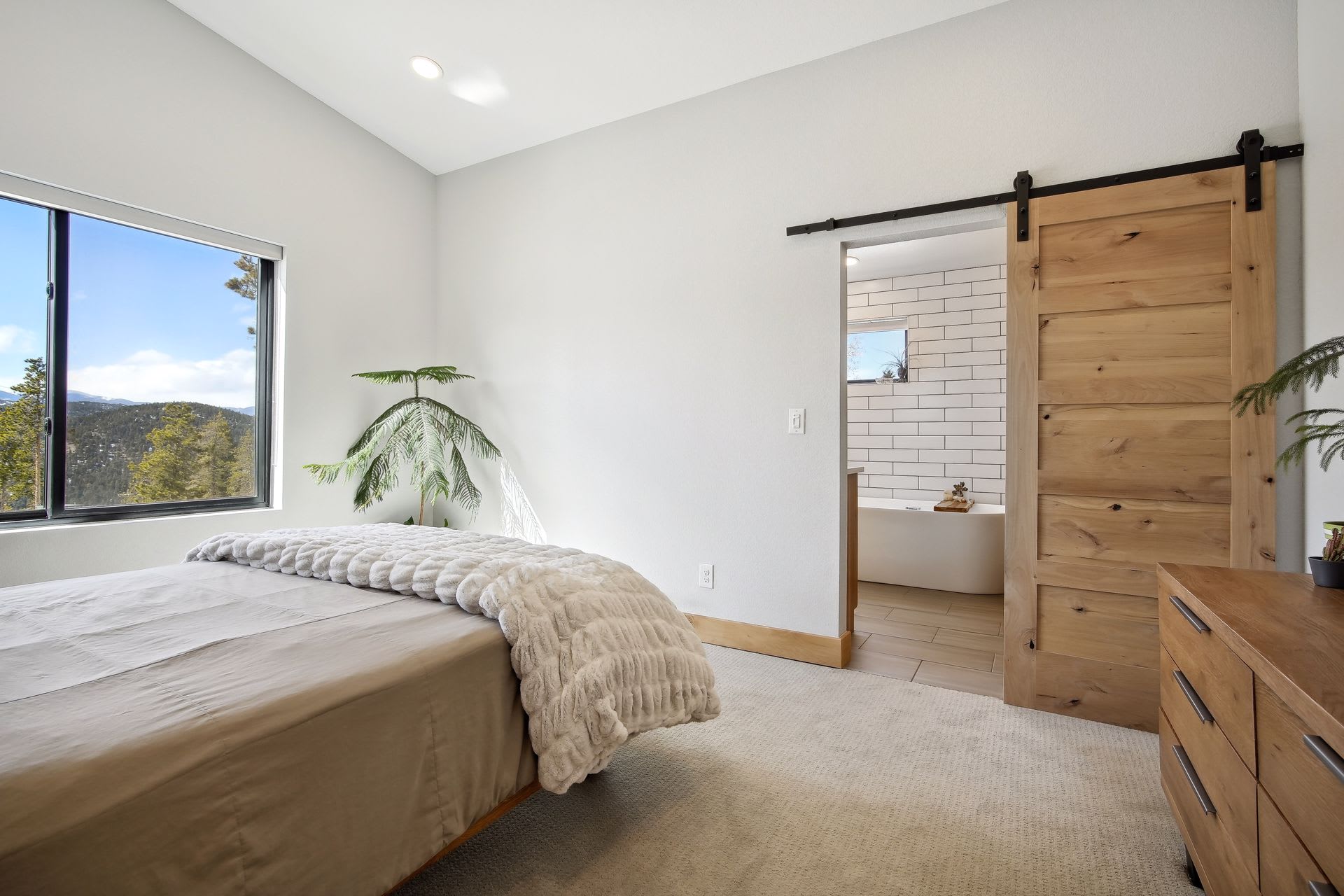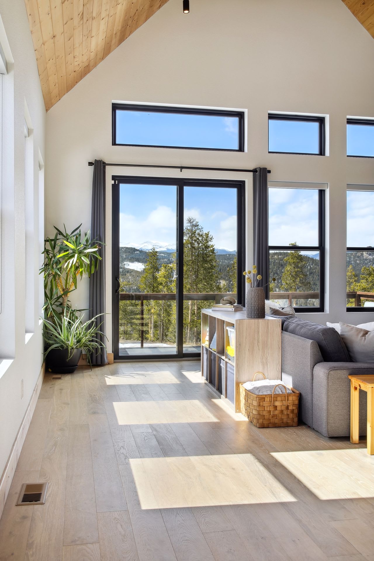 Perched atop Lynx Lair Road this 2020 custom built home was designed to frame the breathtaking mountain views through picture windows to the North, South, and West. The modern Scandinavian vibe is present throughout with clean lines, organic modern style, soaring sealed pine wood ceilings vaulted in the living room, a statement-making fireplace, and beautiful alder doors and trim.