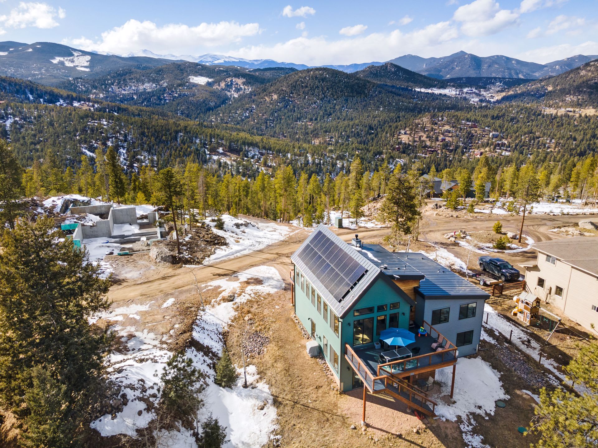 This lot is unique for Evergreen as you have both Mountain Views and a usable pitch in the backyard. Built in 2020 with fire resistant exterior materials to code and full home interior fire suppression system. There is also a fire access road providing an entrance and exit in case of emergency. Community water source with no well.