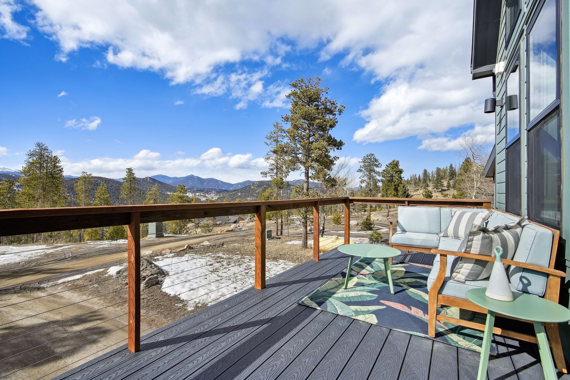 Walking out the back door from the kitchen you’ll enjoy a trex deck with a gas line and beautiful views of the surrounding forested area. There is a total of 600 SF of exterior deck space expanding the living area. The front deck through the sliding door from the living room extends your living space to take in the best Mountain View and Colorado renowned sunsets.