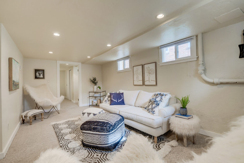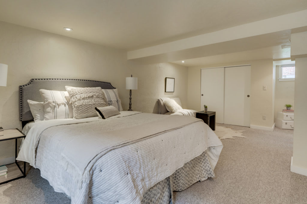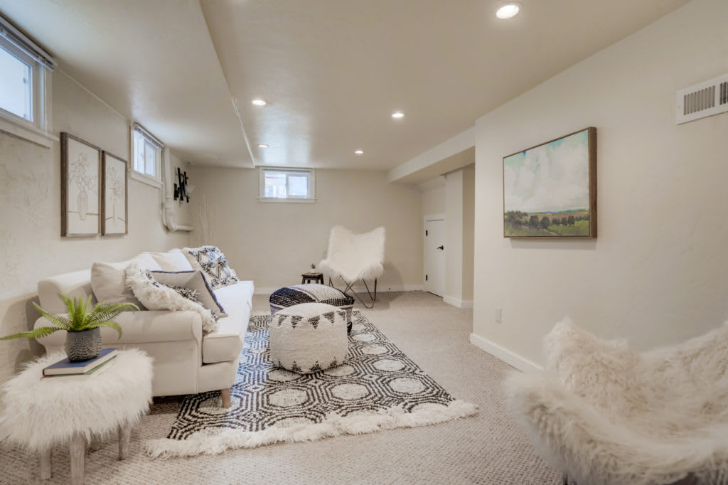 Downstairs is a second living room and a bedroom suite with an egress window. The new owner can choose to have their master bedroom upstairs or downstairs. The back door allows an easy alternative for the basement to be an Airbnb if desired.