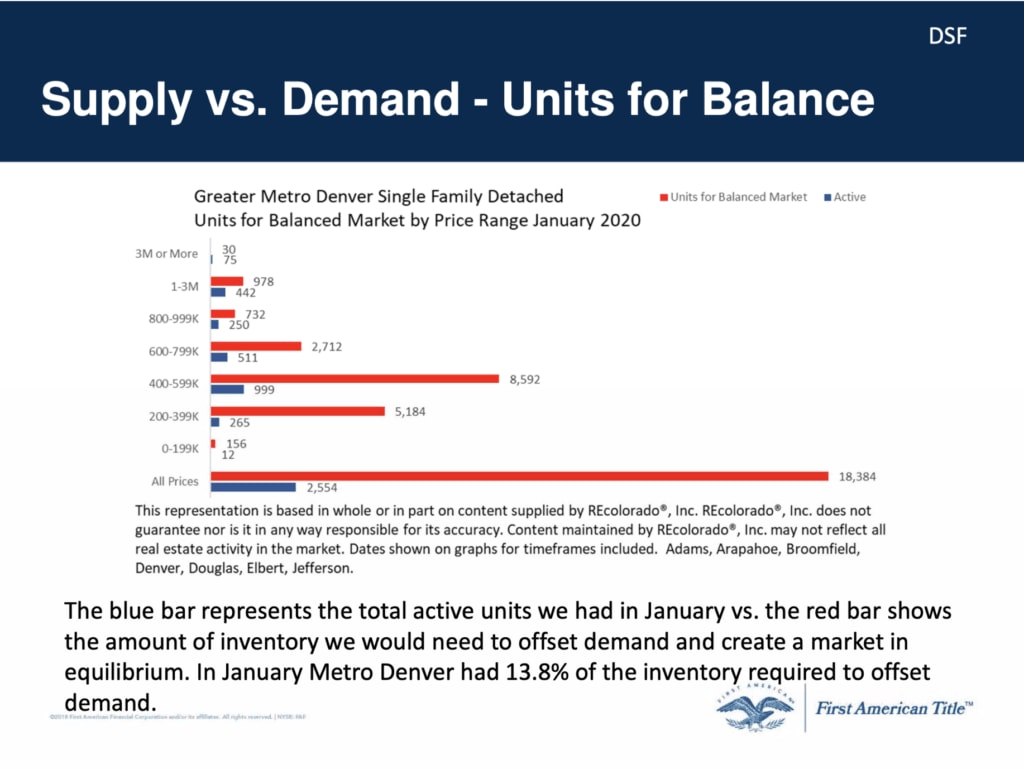 It’s no secret the Denver real estate market is on short supply in regards to listings. In fact Denver has 34% less houses to sell right now than we did this time last year. In other terms, Denver has only 13.8% of the inventory needed to offset the overall demand…This is bound to lead to continued appreciation in 2020.