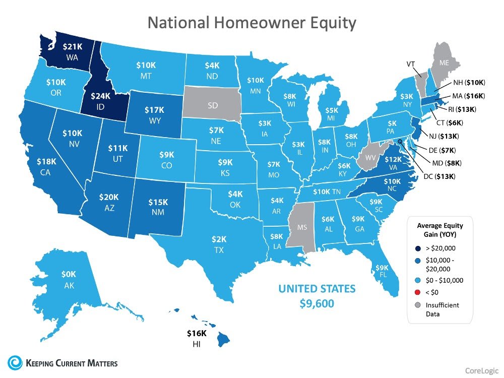 This means that “In the first quarter of 2020, the average homeowner gained approximately $9,600 in equity during the past year.”