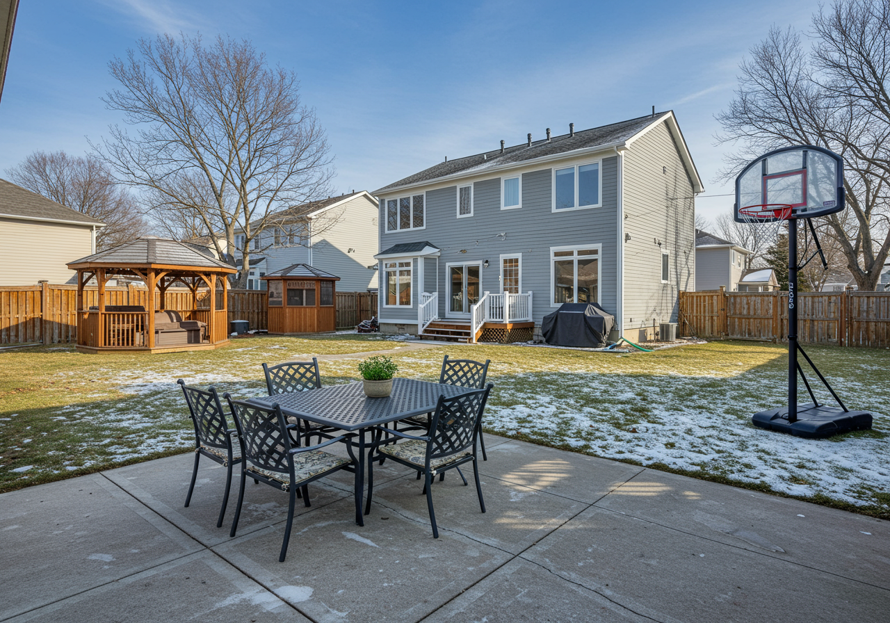 This move is just in time to enjoy the backyard for Spring and Summer. They envision the kids playing basketball in the backyard and outdoor dining under the pergola.