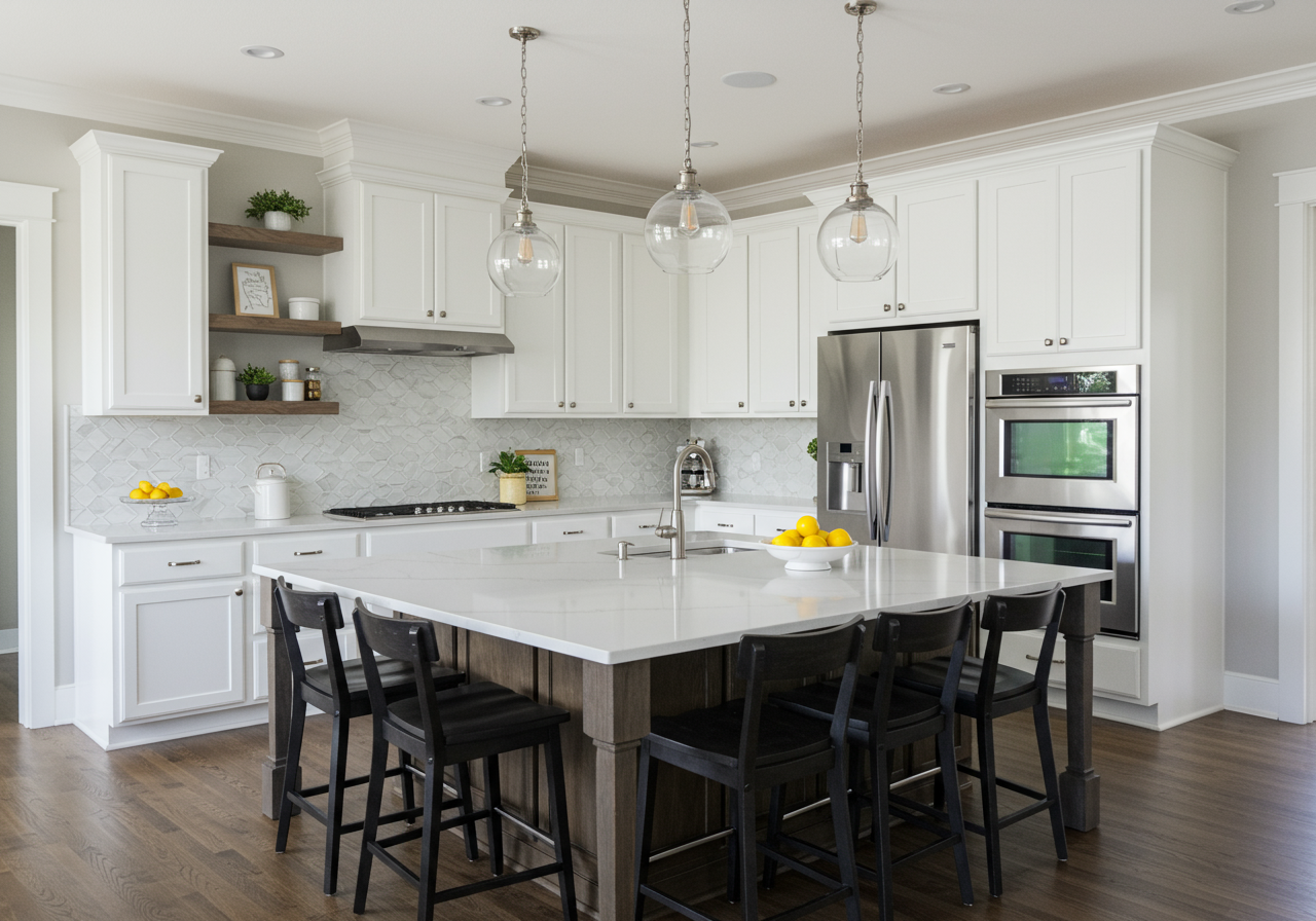 The kitchen is beautifully designed especially for the Casciano family with a formal dining room to host at major holidays. But also they love the extension of the island for busy weeknight family dinners and homework time. The layout is great for cooking family meals and also having friends over for Buffalo Bills games.