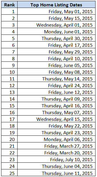 - Below, we see the most popular listing days of 2015. Note the strong preponderance of spring dates and obvious lack of weekends.