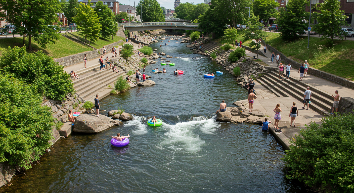 Duggan thinks of central Denver “like a giant doughnut,” with the River Mile as the piece that will fill the hole in the middle. Duggan was around 30 years old when he arrived here in 1998 to take a job with the Colorado-based Southwestern Investment Group, a gig that followed a brief stint with a Canadian developer. On weekends, as a new Denver resident, Duggan would hop on his motorcycle and scope out the city. “There was an energy here, and it was young,” he says. LoDo had just undergone its transformation, with Coors Field as an anchor for bars and restaurants; Elitch Gardens had moved to its land in 1994; and the Pepsi Center opened five years later. The South Platte River, though, was a different story. “Like a lot of American cities, the river was a dumping ground,” Duggan says. To underscore his point, he sometimes shows off a photo of a junkyard along the South Platte—taken decades ago—with flattened, rusting vehicles piled behind a chain-link fence. “This city turned its back on the water,” he says. “Today, one of our key metrics is how many people we can get down to the river.”